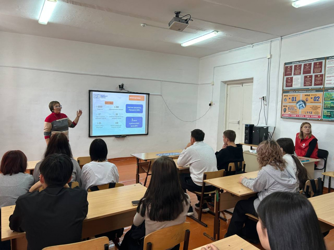 14 октября 2025 студенты и преподаватели медицинского института отправились с профориентационной целью в школы Хоринского района. Провели встречи со школьниками 9-11 классов в Верхнеталецкой, Удинской, Хоринских школах 1 и 2.