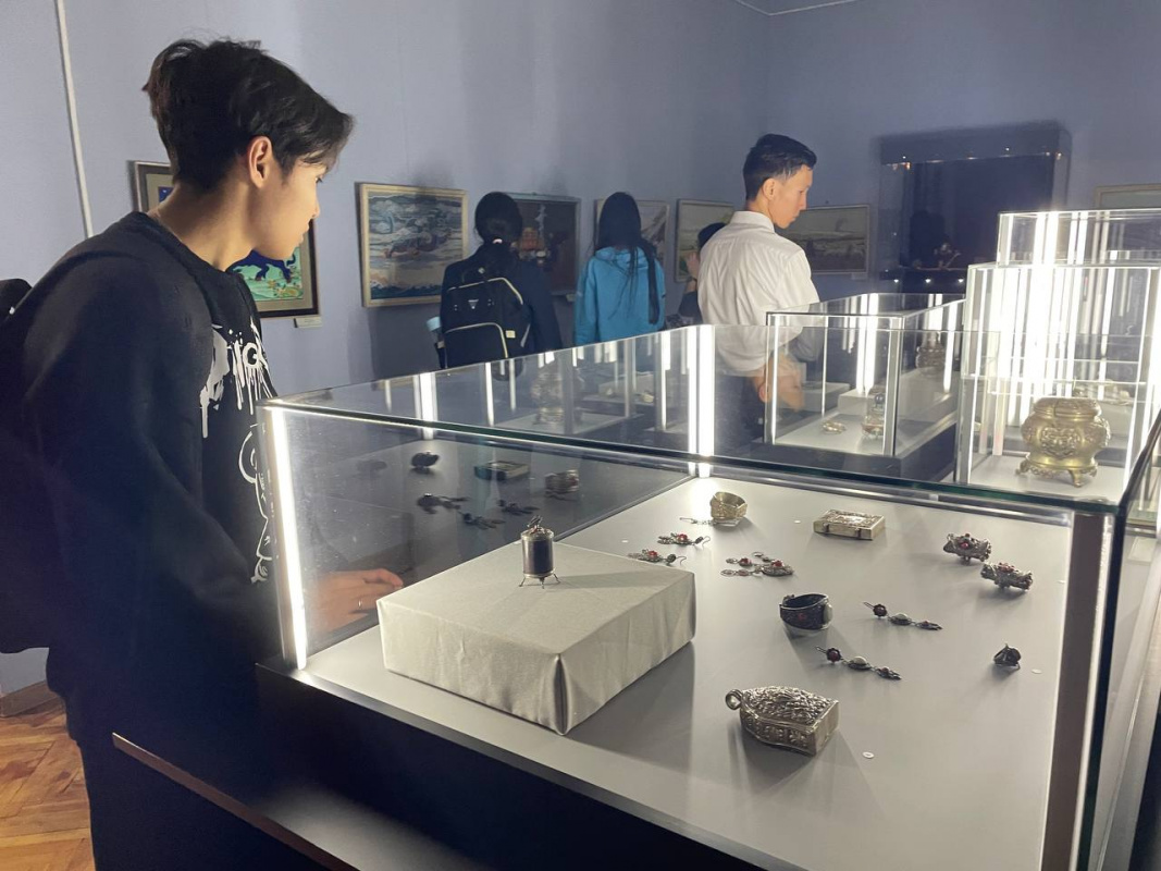 Заключительной точкой маршрута стал «Зал Серебра», где представлена уникальная коллекция ювелирного искусства Бурятии. Студенты увидели старинные украшения, традиционные обереги, изделия известных мастеров и современные интерпретации древнего ремесла. Также большое впечатление произвели картины в стиле «буряад зураг», отражающие буддийские традиции, быт и образ жизни бурятского народа.