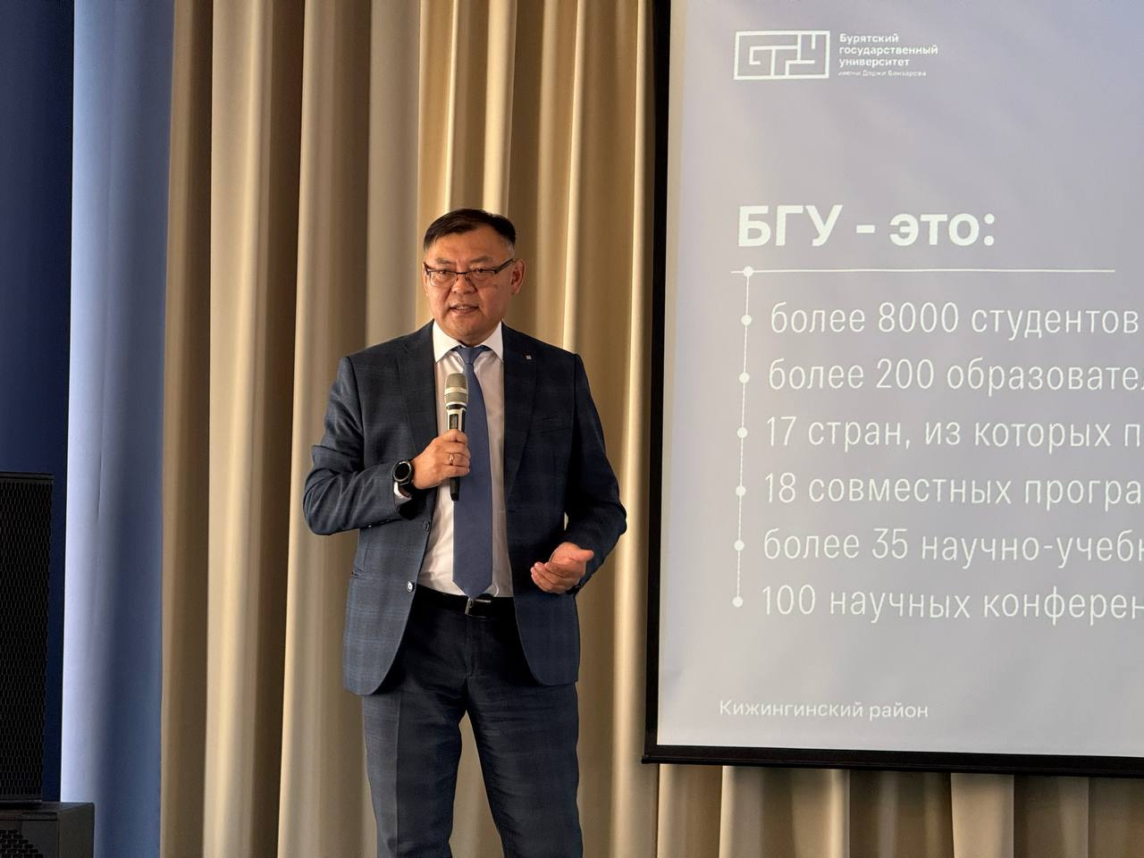 Большой профориентационный выезд с участием ректора состоялся накануне, 21 октября. На базе местного лицея им. В.С. Мункина собрались школьники Кижинги, чтобы провести день с преподавателями ведущего вуза Бурятии.