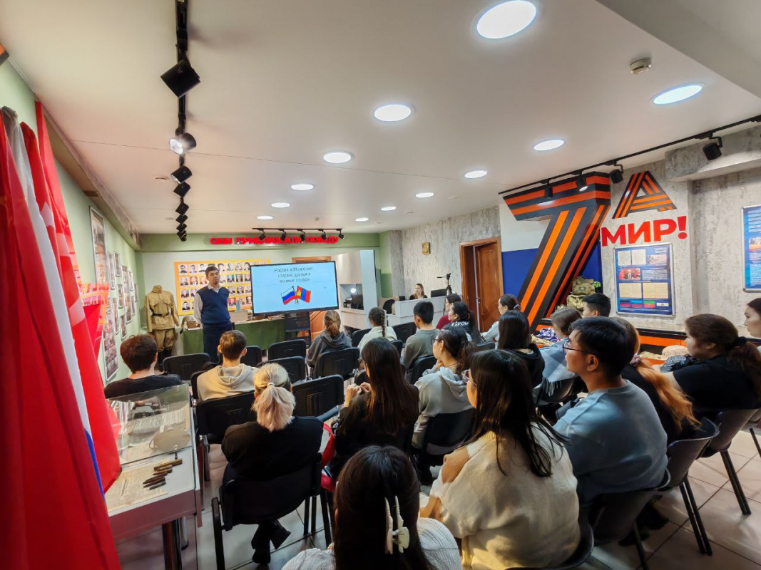 31 октября 2025 г. ко Дню Народного единства России (4 ноября) и ко Дню первого советско-монгольского соглашения о взаимном признании (5 ноября) в Зале боевой славы состоялась увлекательная и познавательная лекция доктора политических наук, доцента, директора Восточного института БГУ Родионова Владимира Александровича, посвящённая историческим и современным отношениям России и Монголии. Студенты Медицинского института, Института педагогики и психологии, а также монгольские студенты, обучающиеся в Институте истории и филологии, получили уникальную возможность погрузиться в богатую историю двусторонних связей.