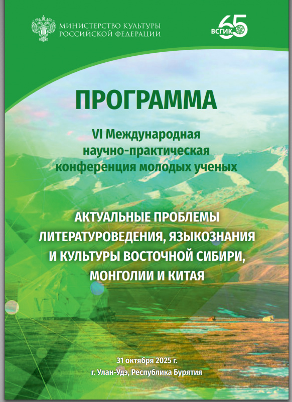 31 октября 2025 г. в Восточно-Сибирском государственном институте культуры прошла традиционная VI международная научно-практическая конференция молодых учёных «Актуальные проблемы литературоведения, языкознания и культуры Восточной Сибири, Монголии и Китая», в которой приняли участие исследователи из России, Китая, Монголии и Таиланда. Доклады были представлены как очно, так и в формате онлайн.