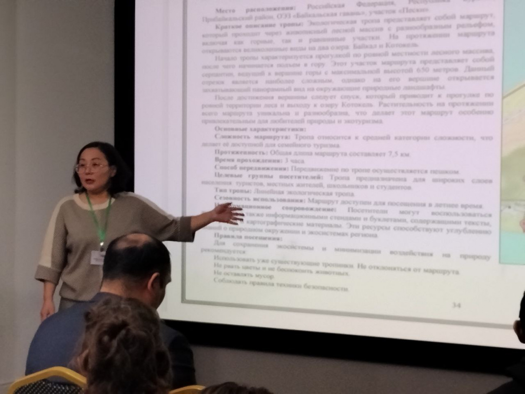 В первый день семинара заведующая кафедрой, к.г.н., доцент Ч.Б. Урбанова представила визитную карточку БГУ, обозначив цели и задачи университетского проекта. Ключевым событием второго дня стала бизнес-игра «Стратегия строительства троп» и защита проектов. Команда БГУ презентовала проект эколого-образовательной тропы, разработанный студентами групп 02340 и 03330 во время учебной выездной практики в селе Максимиха Баргузинского района. Проект был успешно представлен студентом Максимом Колесниковым и получил положительную оценку экспертов, которые отметили его перспективность и дали рекомендации по дальнейшему развитию.