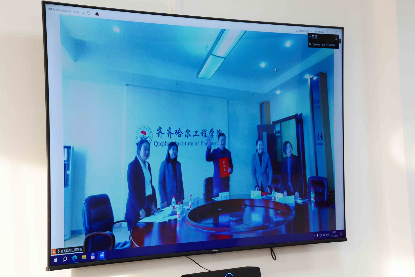 Сегодня, 25 ноября, в режиме видеоконференции состоялась встреча с представителями Цицикарского инженерного института, во главе с председателем г-ном Цао Юнань и вице-президентом Бай Сюэ.