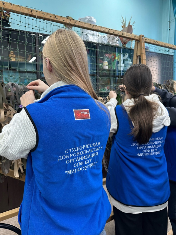 2 декабря 2025 года студенты группы 05220 направления «Социальная работа», являющиеся членами студенческой добровольческой организации «Милосердие», под руководством заведующего кафедрой теории социальной работы Алексея Бадонова и заведующего кафедрой технологического образования и профессионального обучения Ирины Дульчаевой провели волонтерскую акцию по плетению сетей для наших ребят, находящихся сейчас в боевых условиях на СВО.