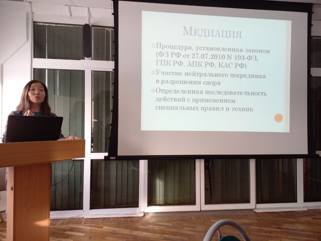 В рамках ежегодной Байкальской юридической декады, посвященной Дню Конституции России, 30-тилетию юридического образования в Республике Бурятия и Дню юриста прошло очередное (ежегодное) заседание круглого стола на тему: «Права на земельные участки». В заседании круглого стола приняли участие: Н.В. Гладкова – заместитель председателя Комитета по земельным и имущественным отношениям; В.А. Атанов – заместитель председателя Комитета по градостроительной политике; М.Л. Бернадская – начальник отдела Управления федеральным имуществом и взаимодействия с органами государственной власти и местного самоуправления в Республике Бурятия; Л.Б. Базарова – главный специалист-эксперт отдела Управления федеральным имуществом и взаимодействия с органами государственной власти и местного самоуправления в Республике Бурятия; О.Б. Раднаева – заместитель начальника отдела землеустройства и землепользования Министерства имущественных и земельных отношений Республики Бурятия; Е. В. Чагдуров – начальник отдела государственного земельного надзора Управления Росреестра; Е.Ф. Хатхеева – начальник отдела государственного экологического надзора по Республике Бурятия Забайкальского межрегионального управления Росприроднадзора, Д.А. Хутакова – начальник отдела государственной регистрации недвижимости Управления Росреестра, Е.В. Булдаева – начальник отдела государственного земельного надзора Управления Федеральной службы государственной регистрации, кадастра и картографии по Республике Бурятия; Е.Д. Ринчинова – государственный инспектор отдела государственного земельного надзора, контроля качества, безопасности зерна и семенного контроля Управления Россельхознадзора по Иркутской области и Республике Бурятия; а также преподаватели кафедры гражданского права и процесса, магистранты и студенты института права и экономики.