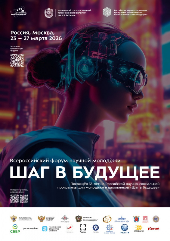 Программа «Шаг в будущее» приглашает творчески продуктивных и талантливых учащихся на грандиозное юбилейное соревнование лучших молодых умов России – Всероссийский форум научной молодёжи «Шаг в будущее». Тематика форума охватывает самые актуальные направления в области инженерных, точных, естественных и социально-гуманитарных наук. Работу форума традиционно освещают главные телевизионные каналы и пресса России. Всероссийский форум «Шаг в будущее» соберёт с 23 по 27 марта 2026 года более тысячи выдающихся молодых исследователей и разработчиков – будущую научно-технологическую элиту страны.