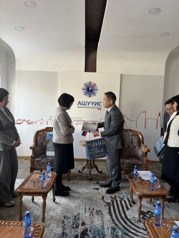 В рамках насыщенной программы визита делегация начала работу со знакомства с Международной школой монгольской медицины (ISMM), где состоялась встреча с директором института Д. Цэнд-Аюуш для обсуждения возможностей взаимодействия в области традиционной медицины и фармацевтики.