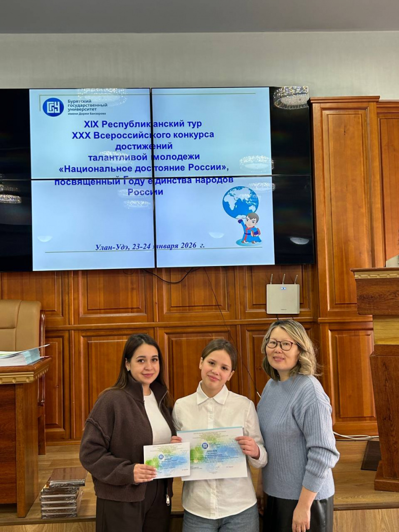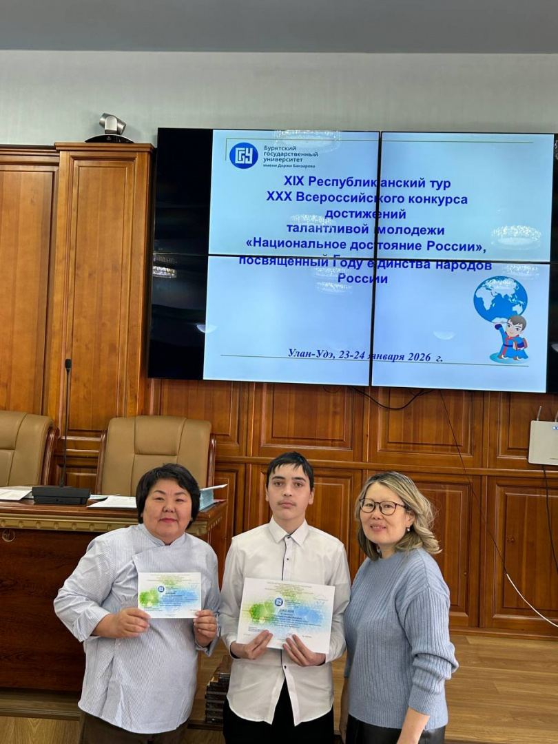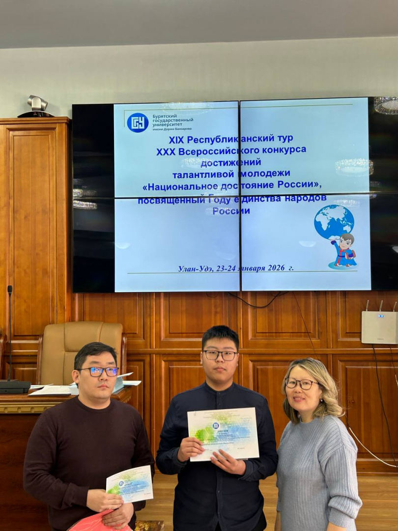 23-24 января 2026 года на базе Бурятского государственного университета имени Доржи Банзарова состоялся для школьников ставший традиционным XIX Республиканский тур XXX Всероссийского конкурса достижений талантливой молодежи «Национальное достояние России», посвященный Году единства народов России.