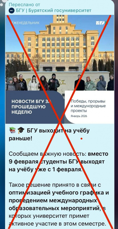 Актуальное расписание занятий и все официальные приказы публикуются только на официальном сайте Бурятского государственного университета - https://www.bsu.ru/ и в его подтвержденных официальных каналах: