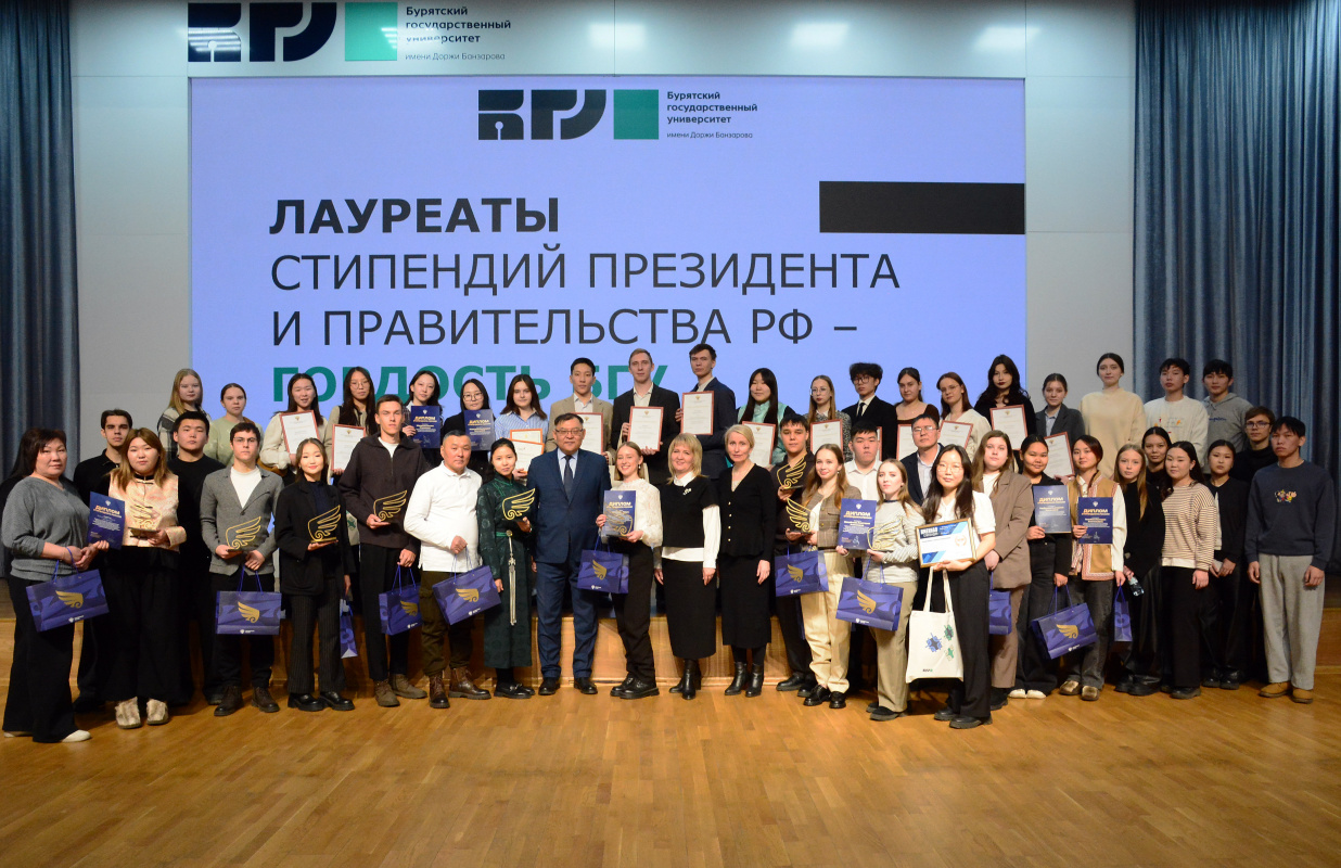 27 февраля в Бальном зале Бурятского государственного университета имени Доржи Банзарова состоялось торжественное событие, которое по праву можно назвать праздником интеллекта и таланта. Здесь собрались те, кто составляет гордость вуза, — лауреаты стипендий самого высокого уровня: Президента Российской Федерации, Правительства Российской Федерации, именной стипендии имени Г.И. Невельского, а также представители коренных малочисленных народов Севера, Сибири и Дальнего Востока, добившиеся выдающихся успехов в учебе и науке. Кроме того, на сцене чествовали самых ярких и активных студентов-волонтеров, чья работа была отмечена на всероссийском уровне.