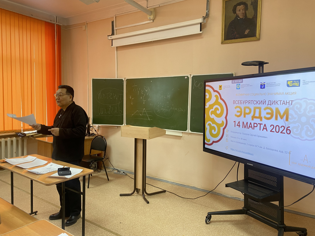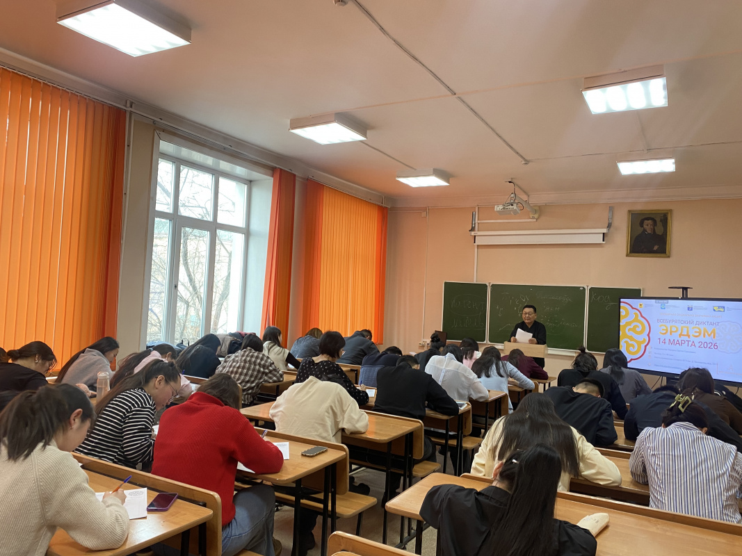 Одна из главных республиканских площадок проведения акции была организована 14 марта 2026 г. в стенах Бурятского государственного университета им. Д.Банзарова. В акции приняли участие студенты Высшей школы бурятского языка и литературы, а также других институтов БГУ в количестве 33 человек. Диктором диктанта выступил заведующий кафедрой бурятской и эвенкийской филологии, кандидат педагогических наук, доцент Сергей Гармаевич Ошоров.