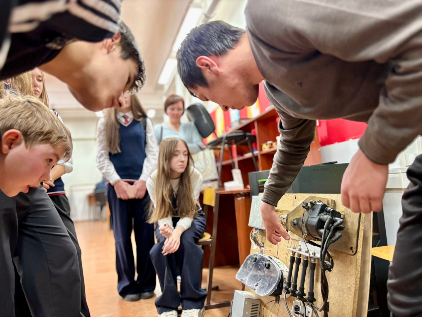А после мастер-классов всех ждала экскурсия в Студенческое конструкторское бюро и учебные лаборатории. Вот где глаза разбегались! Самбилов Д.Ж. и Шелковников И.Н. показали, над чем реально колдуют студенты Физмата: