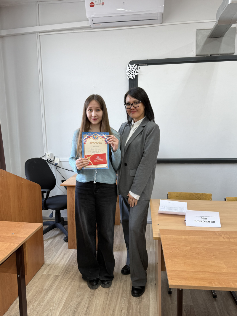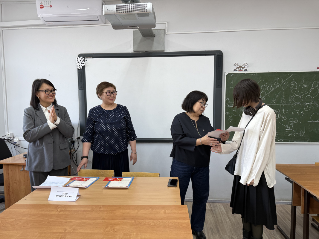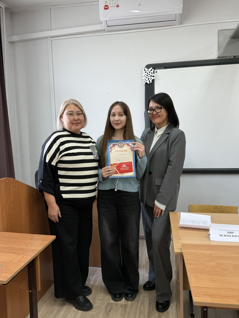 По итогам прохождения всех конкурсных этапов были определены победители, были вручены дипломы и ценные призы. На вручении присутствовали заведующая кафедрой общей и клинической психологией, кандидат психологических наук, доцент Тудупова Туяна Цибановна, кандидат психологических наук, доцент кафедры общей и клинической психологии Доржиева Марина Очиржаповна.