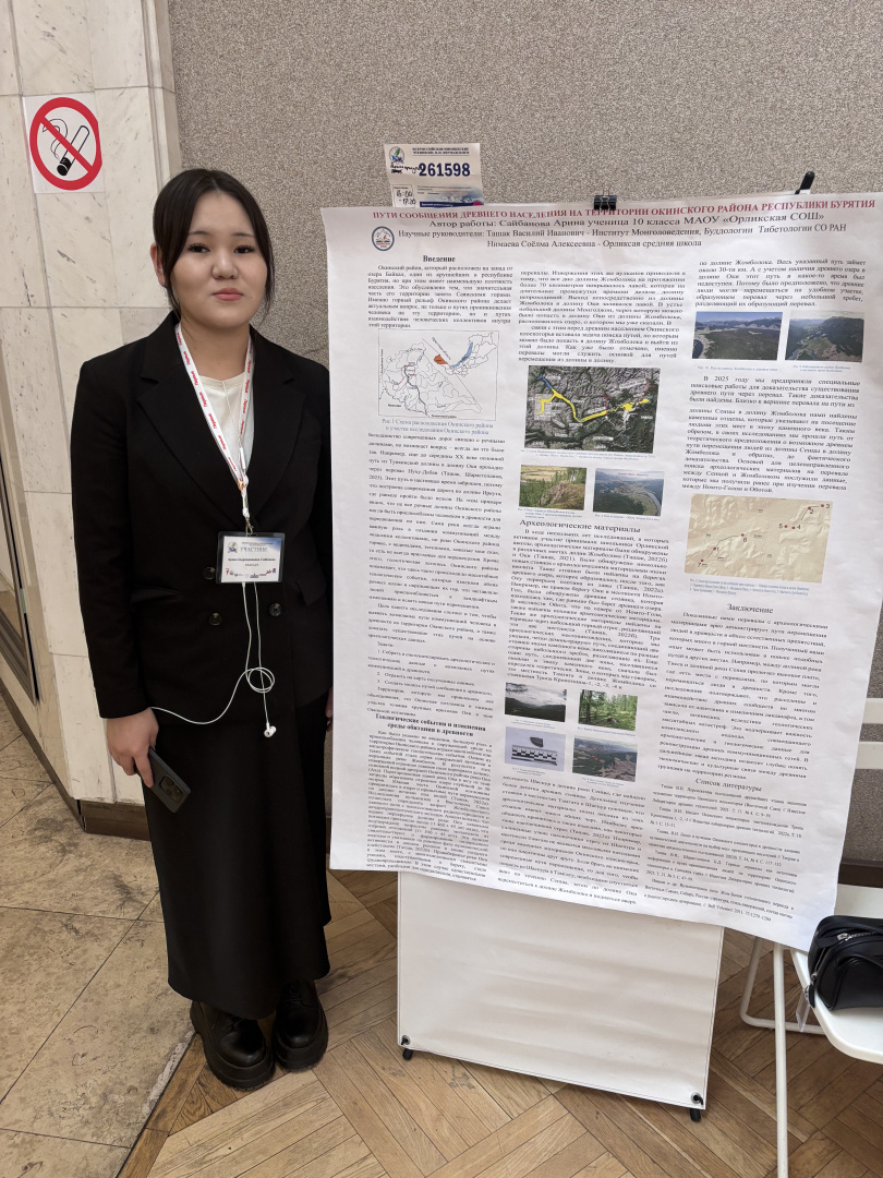 - Сайбанова Арина Цыренжаповна, 10 класс, МАОУ «Орликская СОШ», Окинский район. Работа «Пути сообщения древнего населения на территории Окинского района Республики Бурятия». Научные руководители Ташак Василий Иванович, Нимаева Соëлма Алексеевна. Секция «Археология». Статья Арины вошла в сборник научно-исследовательских работ обучающихся, а также получила особый приз от некоммерческого экологического Фонда.