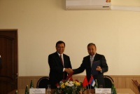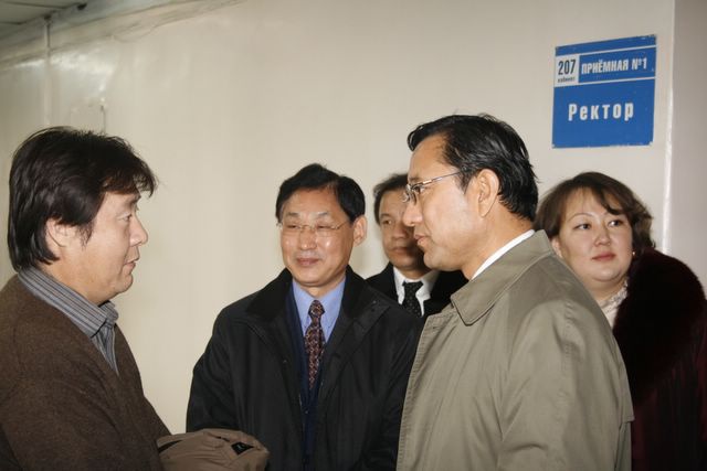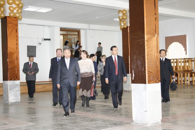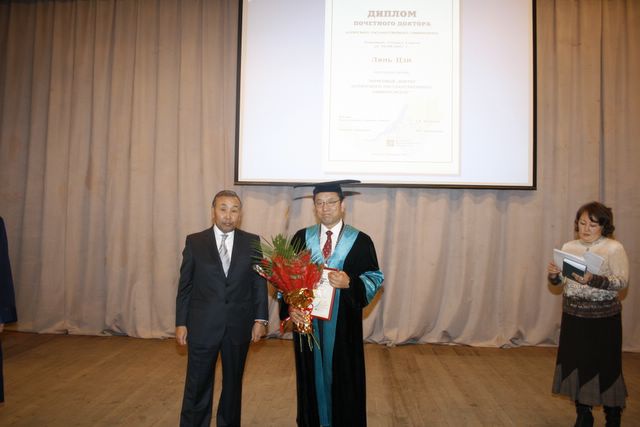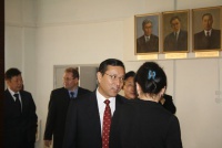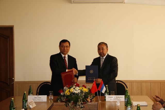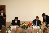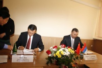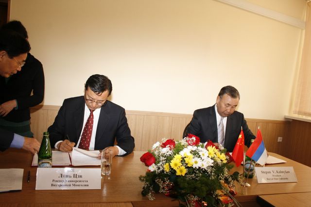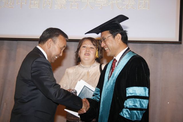 Посещение Главного корпуса БГУ делегацией Университета Внутренней Монголии (г.Хух-Хото, КНР), подписание договора о сотрудничестве, вручение регалий почетного доктра БГУ ректору УВМ господину Лянь Цзи