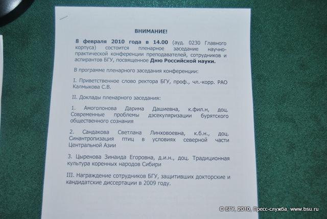 Пленарное заседание научно-практической конференции преподавателей, сотрудников и аспирантов БГУ, посвященное Дню Российской науки