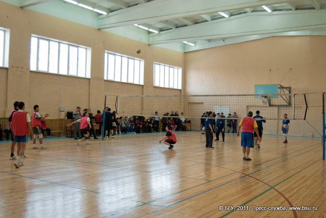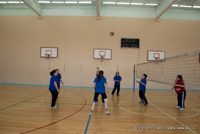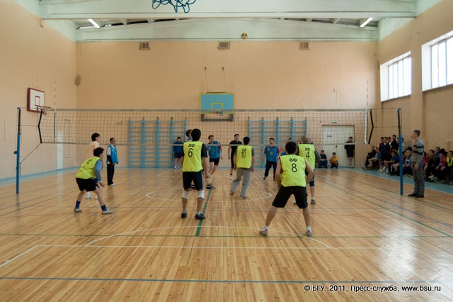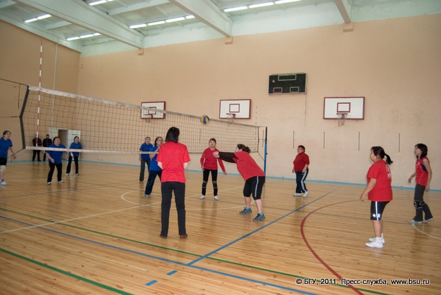 Соревнования по волейболу среди женских и мужских команд в рамках Спартакиады преподавателей и сотрудников университета.