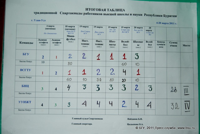 Традиционная Спартакиада преподавателей и сотрудников высшей школы и науки Республики Бурятия (завершающие соревенования и закрытие)