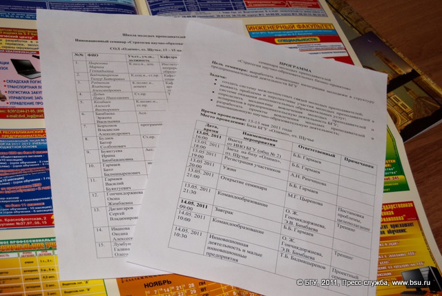 Семинар-тренинг института непрерывного образования по инновационной научно-образовательной деятельности университета (13-15 мая 2011 г., спортивно-оздоровительный лагерь "Олимп" на о. Щучьем).
