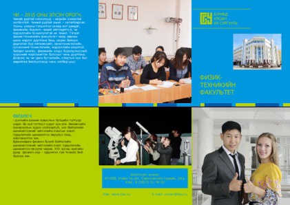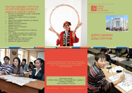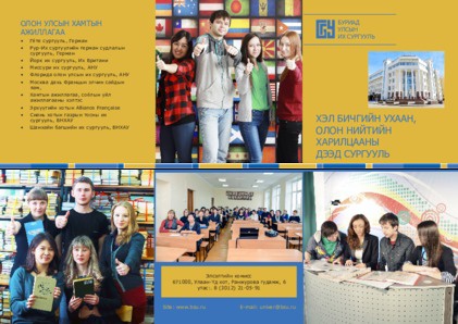 Буриад улсын их сургууль, дээд сургууль ба салбаруудын танилцуулга (буклеты о БГУ на монгольском языке)